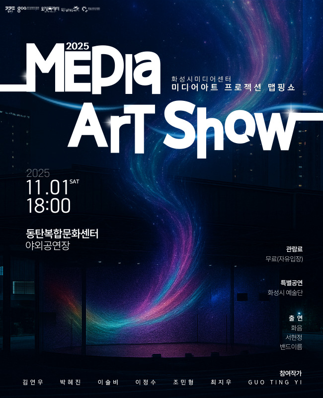 【[기 타] 행사】2025 프로젝션 맵핑 <미디어아트쇼> 장소 동탄복합문화센터 야외공연장 기간 2025년 11월 1일 ~ 2025년 11월 1일 요일 토 공연시간 18:00~19:30 티켓정보 전석무료 관람등급 전체관람가 문의 031-8015-2734 문의 : 031-8015-2734 001.jpg [ Size : 144.99KB, Down : 68 ] 미리보기 다운로드 001 001.jpg [ Size : 144.99KB, Down : 178 ] 미리보기 다운로드 001 002.jpg [ Size : 88.96KB, Down : 183 ] 미리보기 다운로드 002 003.jpg [ Size : 38.68KB, Down : 179 ] 미리보기 다운로드 003 목록보기