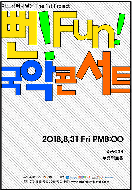 【[공 연]대관공연】뻔!펀! 국악콘서트 장소 누림아트홀 기간 2018년 8월 31일 ~ 2018년 8월 31일 공연시간 8월 31일(금) 20시 티켓정보 전석 무료 관람등급 문의 070-4643-7303 . 뻔뻔국악콘서트.gif [ Size : 163.08KB, Down : 448 ] 미리보기 다운로드 ???????????????????(0831).jpeg [ Size : 1.12MB, Down : 751 ] 미리보기 다운로드 목록보기
