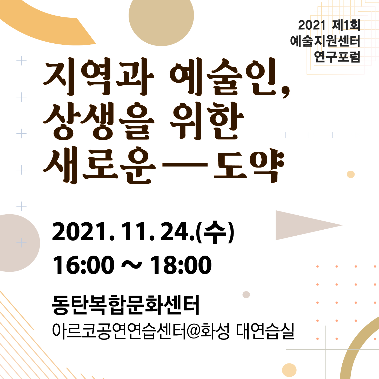 【[기 타] 일정】2021 예술지원센터 연구포럼 '지역과 예술인, 상생을 위한 새로운 도약'