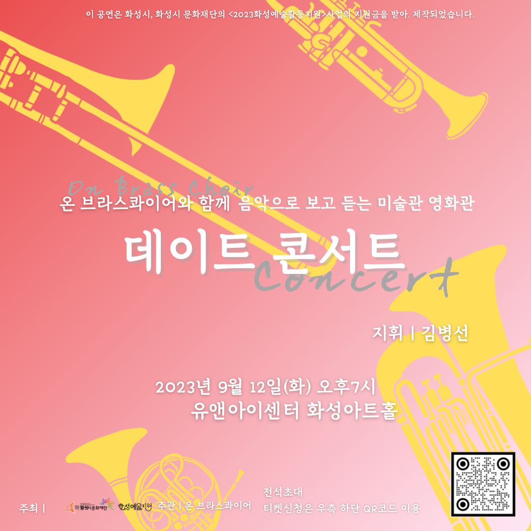 1. 온브라스 콰이어 데이트 콘서트,장소:화성아트홀,기간:2023년 9월 12일~2023년 9월 12일