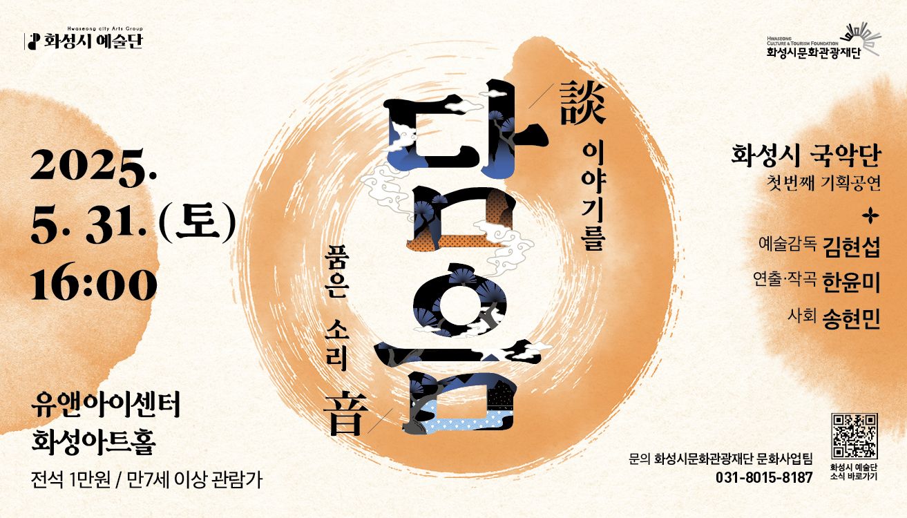 1. 화성시 예술단 기획공연 「담음(談音) ; 이야기를 품은 소리」,장소:화성아트홀,기간:2025년 5월 31일~2025년 5월 31일