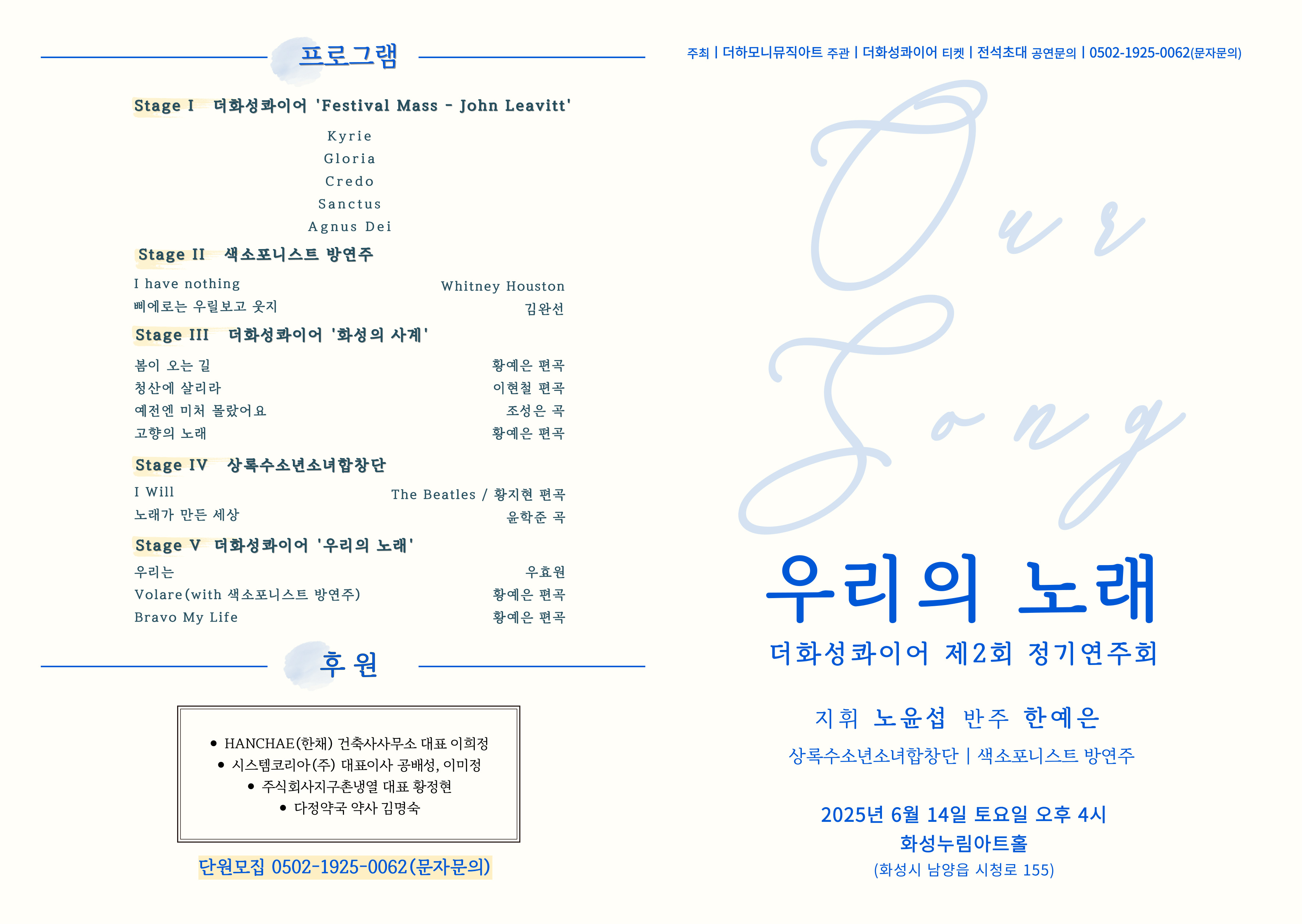 1. 더화성콰이어 제2회 정기연주회 "우리의 노래",장소:,기간:2025년 6월 14일~2025년 6월 14일