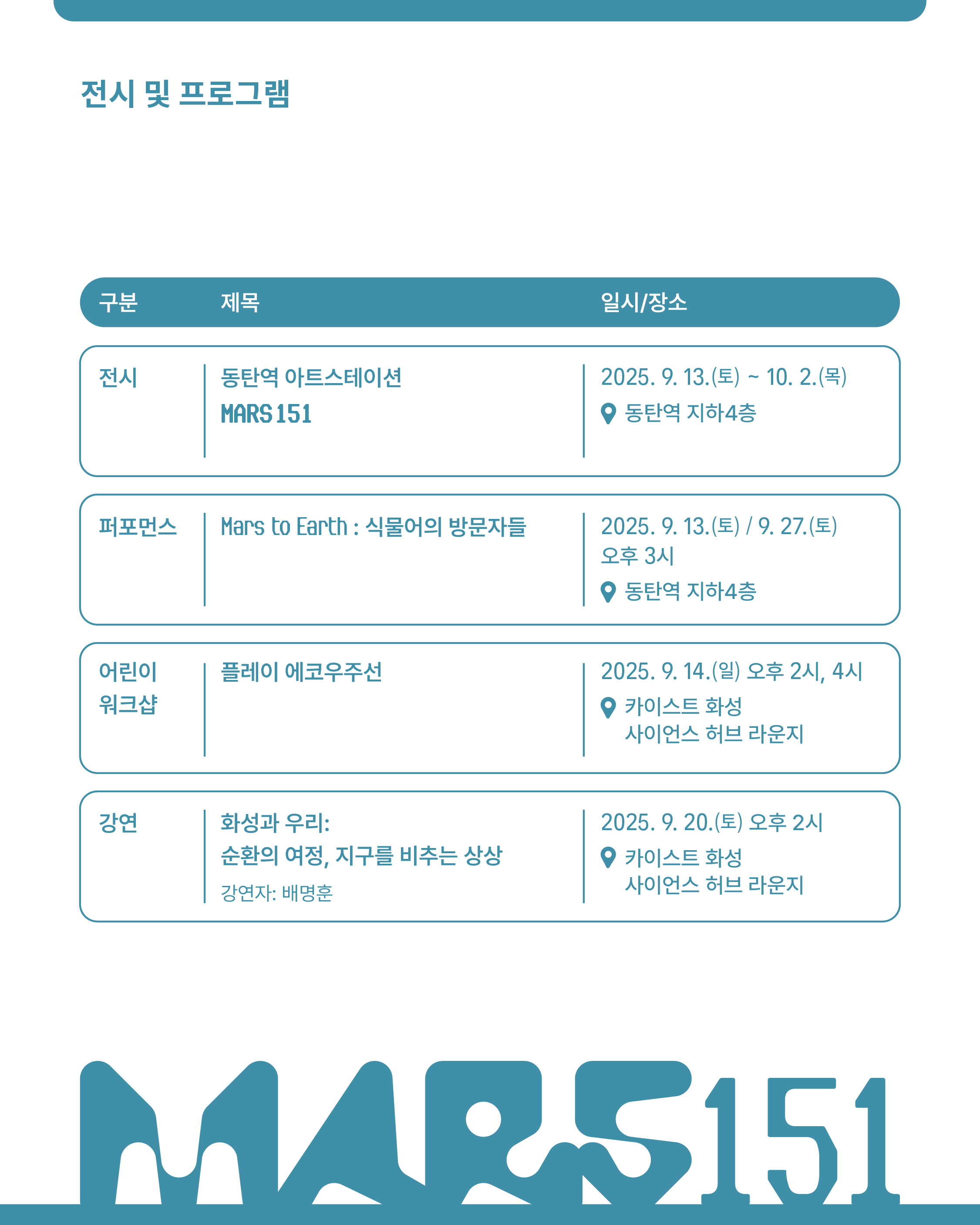 1. 2025 동탄아트스테이션 전시 <MARS 151>,장소:,기간:2025년 9월 13일~2025년 10월 2일