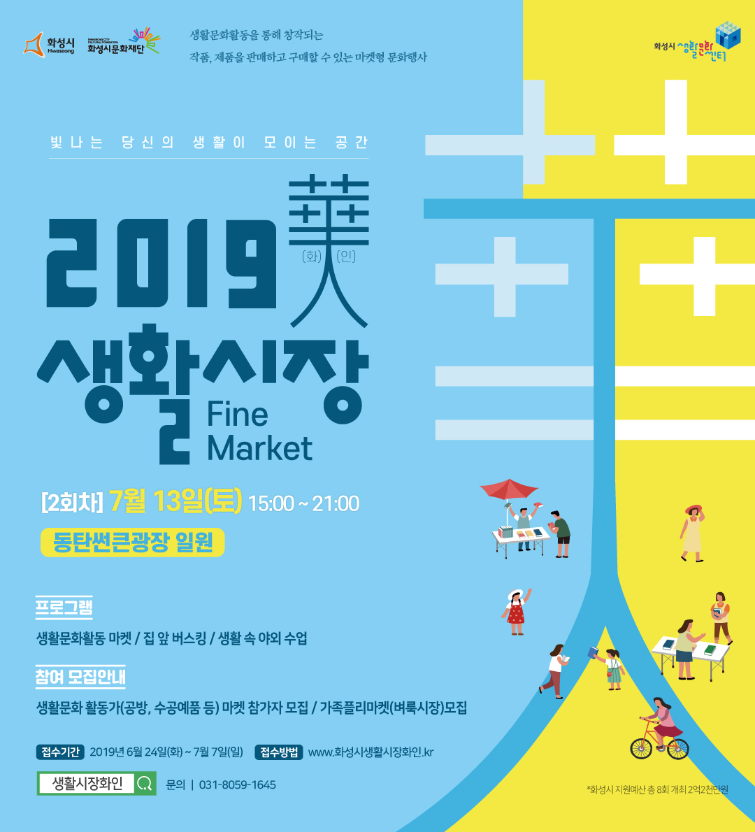 1. 생활시장 화(華)인(人),장소:동탄썬큰광장,기간:2019년 7월 13일~2019년 7월 13일