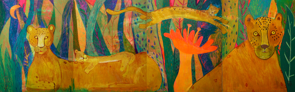 만욱_집에 온 아무르_나무판넬 위에 오일파스텔_320x100cm_2016