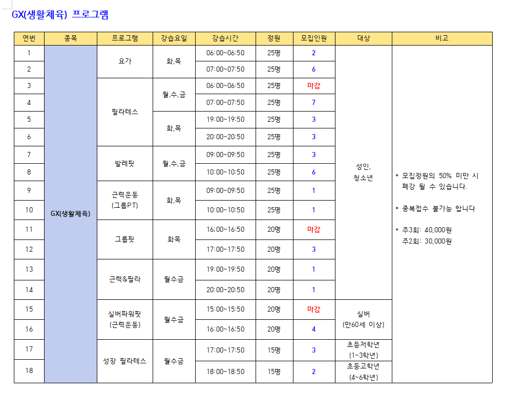 ● 모집프로그램: 수영 프로그램, GX(생활체육), 헬스