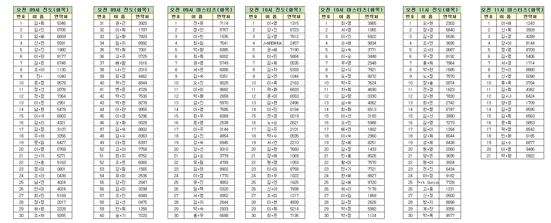 대기자 중 2025년 8월 강습 순번도래자 및 등록날짜, 결제방법 등의 자세한 사항은