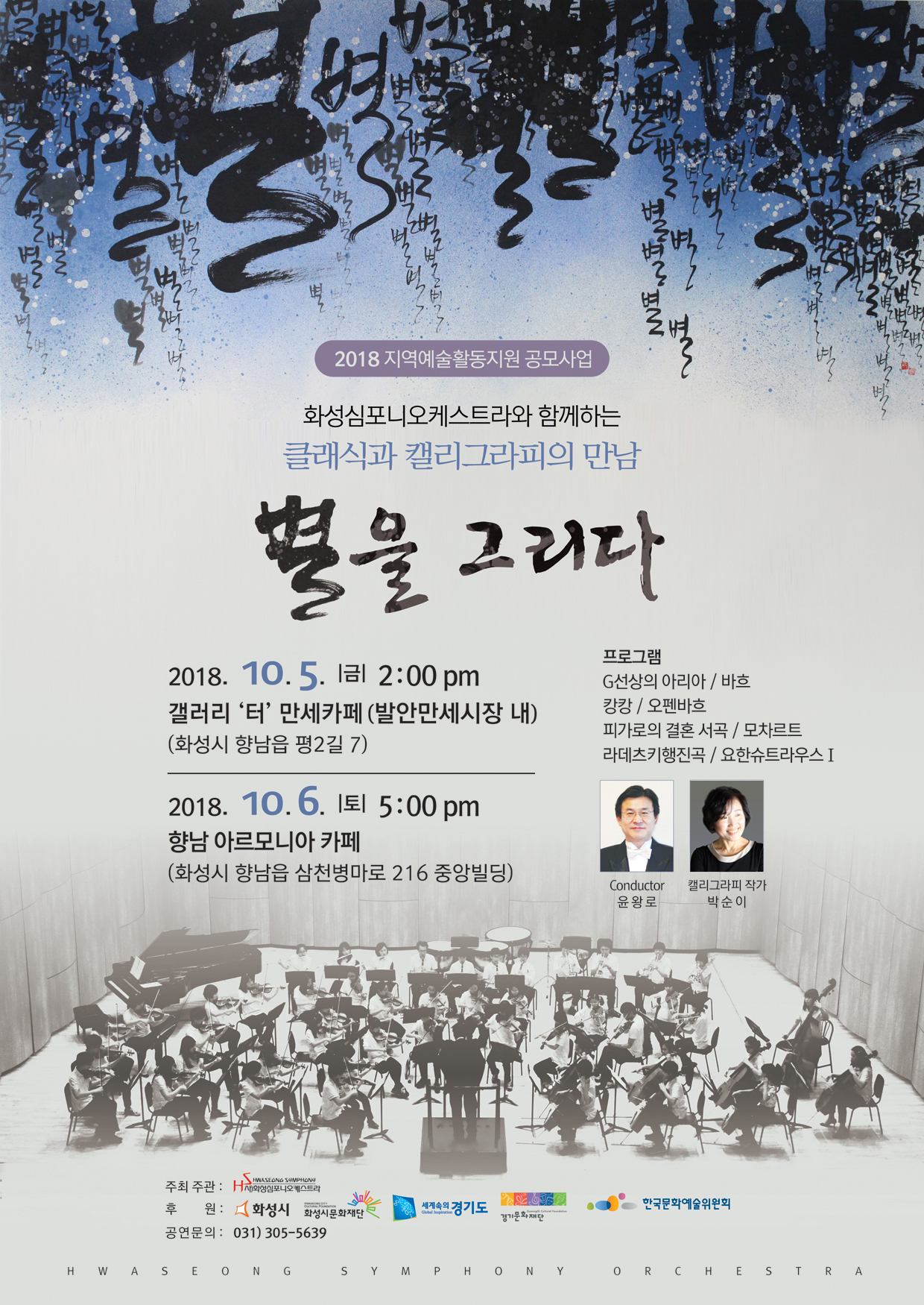 2018년도 지역예술활동지원 선정사업 화성심포니오케스트라 별을 그리다 작성자 관리자 작성일 2018년 9월 6일 13시 47분 2초 조회 1,194 별을그리다.jpg [ Size : 1.4MB, Down : 858 ] 미리보기 다운로드 목록보기