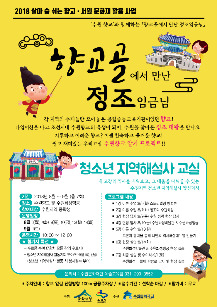 타임머신을 타고 조선시대 수원향교의 유생이 되어, 수원을 찾아온 정조 대왕을 만나요