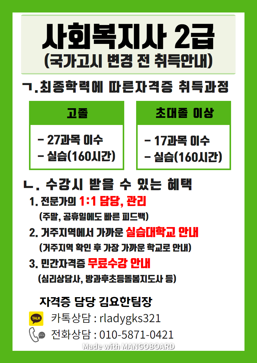 [국가고시 변경전 취득할수 있는 마지막기회] 사회복지사2급 명퇴자, 주부 재취업 1위 자_격_증
