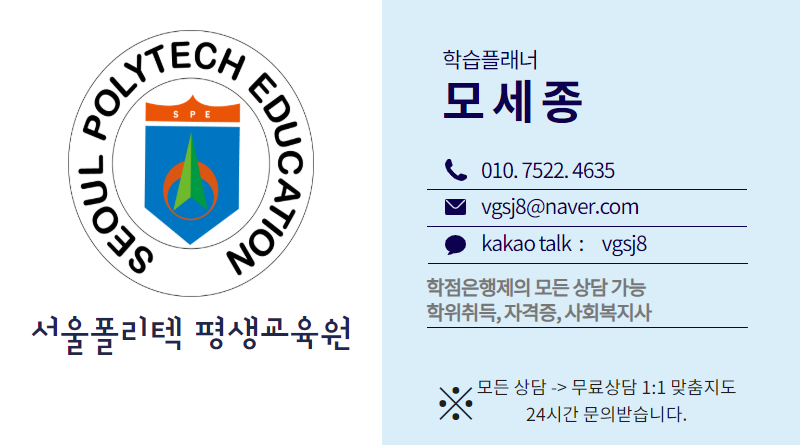 이외에도 보건의료영역(의료사회복지사,정신보건사회복지사,학교사회복지사,자원봉사활동관리, 정사회복지사,군사회복지사,산업사회복지사)여러 분야 쪽으로 노후 대비 및 취업가능 하십니다.