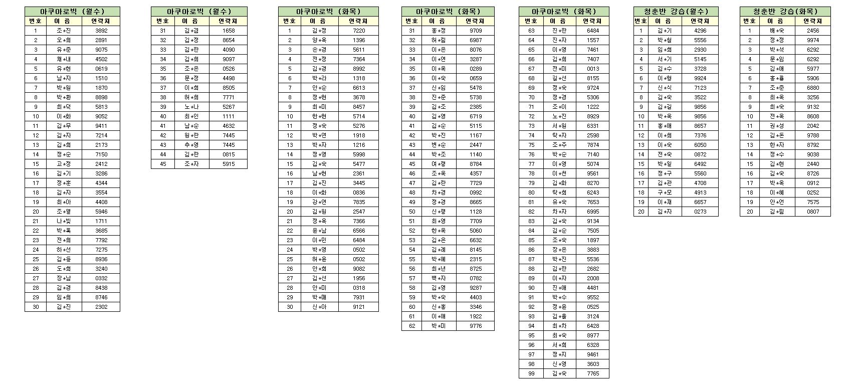 - 대기자 등록은 강습반 운영 상황에 따라 달라질 수 있습니다.